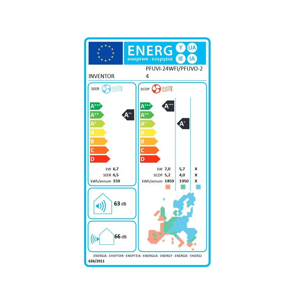 Το κλιματιστικό Inventor Professional PFUVI-24 WFI PFUVO-24 έχει ισχύ 24000 BTU και είναι κατάλληλο για χώρους από 50m² έως 55m².